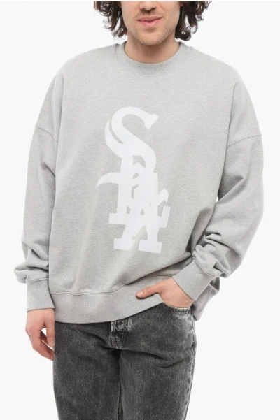Cotton Blend Cropped Fit Crew-neck Sweater With Embroideries In White