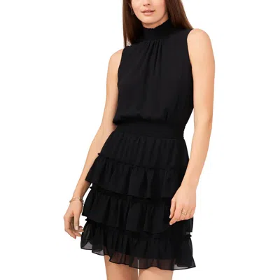 Womens Ruffled Tiered Mini Dress In Black
