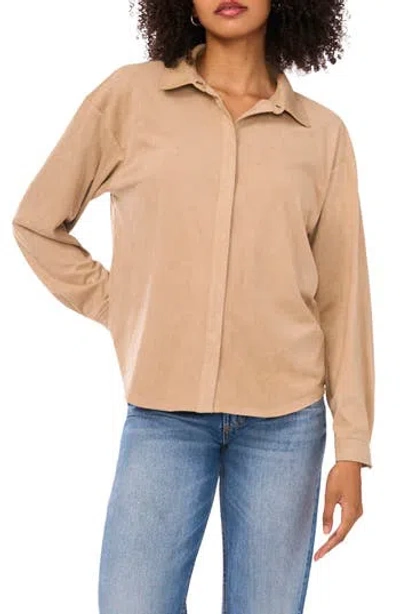 Faux Suede Button-up Shirt In Brown