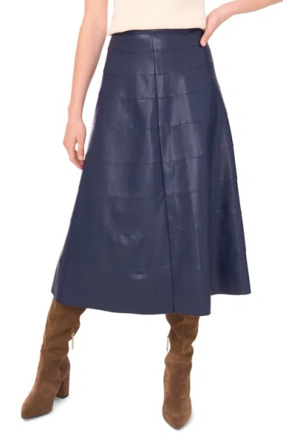 Faux Leather Paneled Belted Midi Skirt In Brown