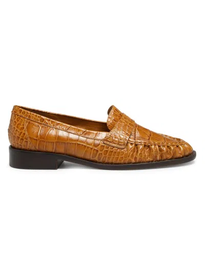 Women's Classic Crocodile-embossed Loafers In Brown