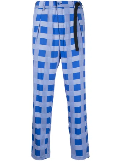 几何图案印花褶饰长裤