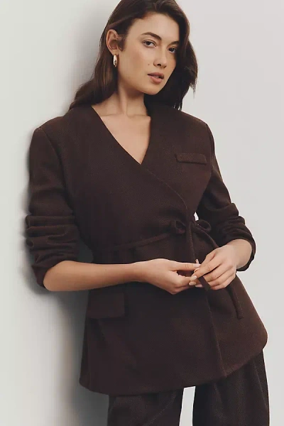 Luca Wrap Blazer Jacket In Brown