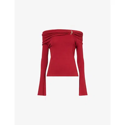 Womens Red Virgo Off-shoulder Knotted Woven Top Xs