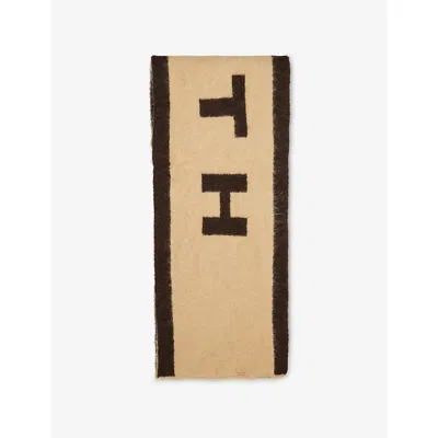 Womens Keeley Brand-print Knitted Scarf Beige In Neutral
