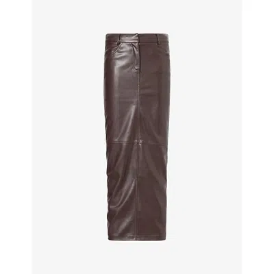 Womens Chocolate Carys Tailored Faux-leather Maxi Skirt In Burgundy