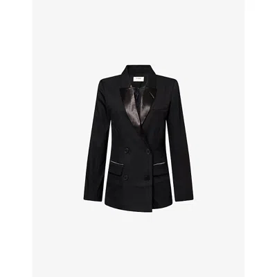Womens Black Delphine Satin-lapel Woven Tuxedo Blazer