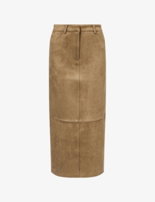 Womens Green Lorna Straight Faux-suede Maxi Skirt In Black
