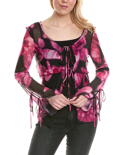 Women's Floral Tie-back Lantern Sleeve Top In Beige Multicolor