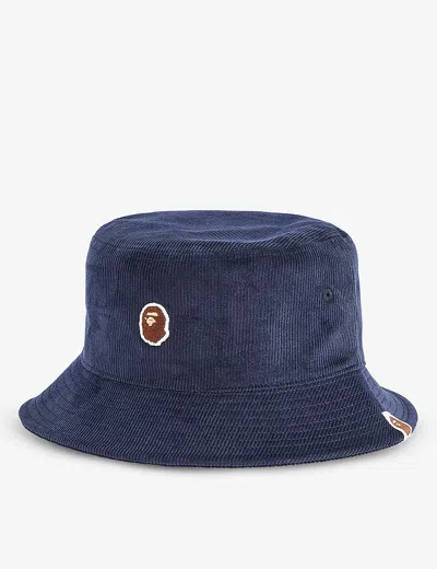 Mens Navy Logo-patch Cotton-corduroy Hat