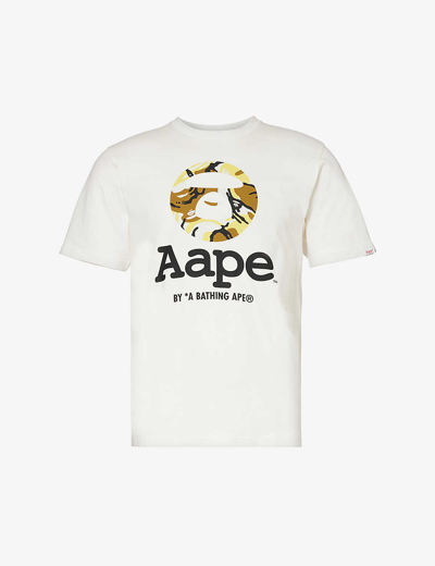 Mens Ivory Moonface Camo-print Regular-fit Cotton-jersey T-shirt In White