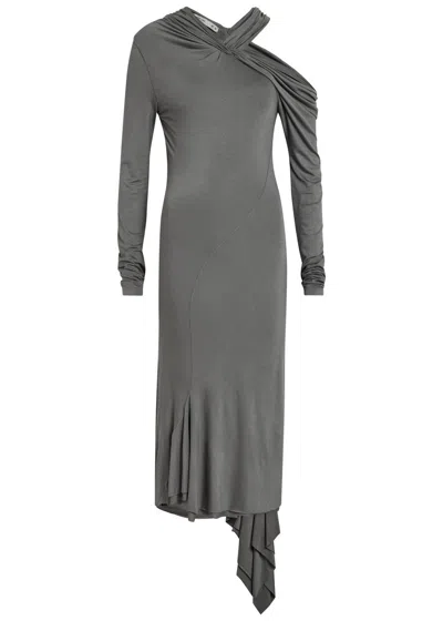 Asymmetric Jersey Midi Dress In Gray