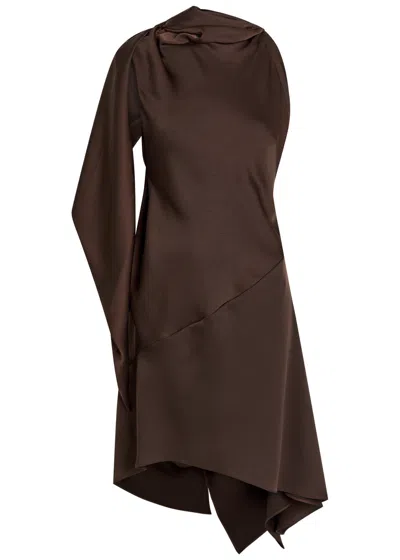 Cape-effect Asymmetric Satin Mini Dress In Brown