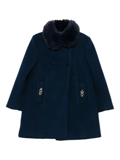 Kids' Faux-fur Collar Chain-detail Coat In Blue