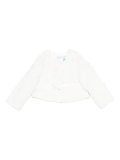 Babies' Crochet-trim Cropped Cardigan In 白色