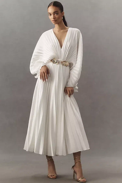 Yarni Sleeveless V-neck Embellished Maxi Dress In White