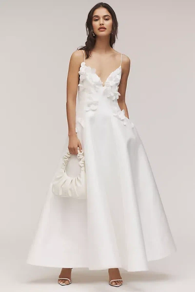 Castleford 3d Floral Plunge A-line Wedding Gown In White