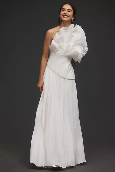 Whittington Sculptural Pleated A-line Wedding Gown In White