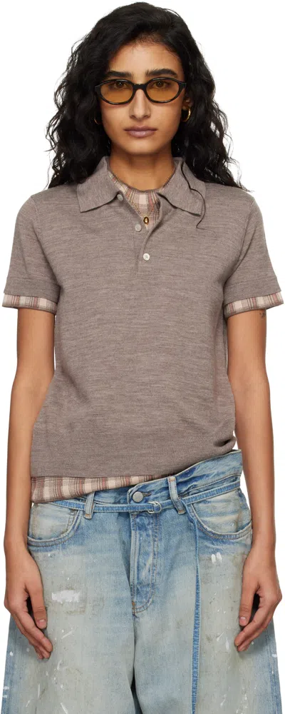 Brown Layered Wool Knit Polo