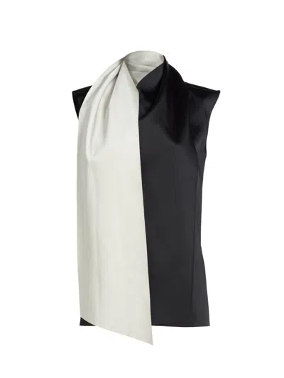 Women's Bi-color Satin Scarfneck Blouse In White