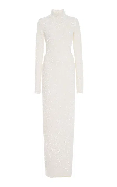 Sequined Turtleneck Maxi Dress In White