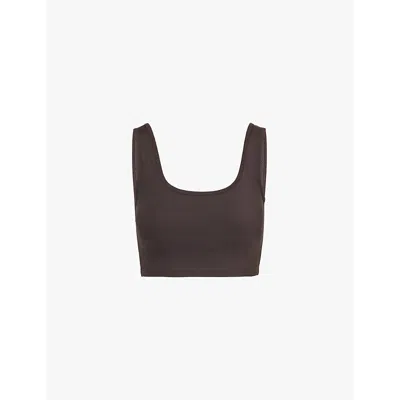 Ultimate Square-neck Stretch-woven Sports Bra In Coffee Bean