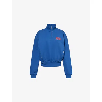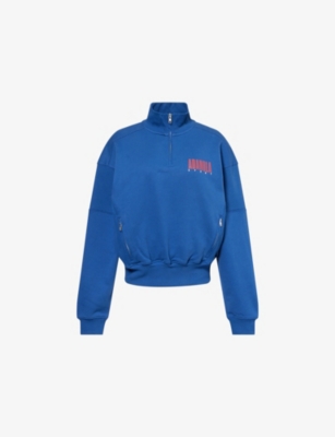 Womens Sport Horizon Funnel-neck Zip Cotton-jersey Sweatshirt In Blue
