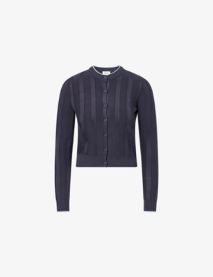 Womens Striped Ribbed Knit Cardigan