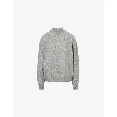 Womens Dark Grey Melange Oversized Crewneck Wool-blend Jumper In Gray