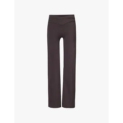 Womens Coffee Bean Ultimate Wrap-over High-rise Stretch-recycled-polyamide Trousers