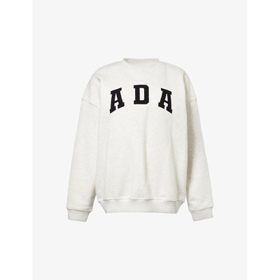 Womens Light Grey Melange Logo-embroidered Oversized Organic-cotton Sweatshirt