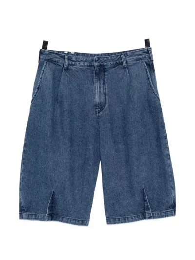 Pleated Denim Shorts In Blue