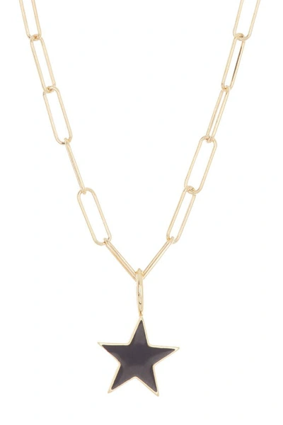 Black Enamel Star Paper Clip Chain Necklace In Gold