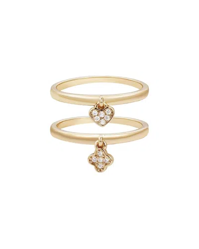 Gold Cubic Zirconia Dangling Heart And Clover Ring Set
