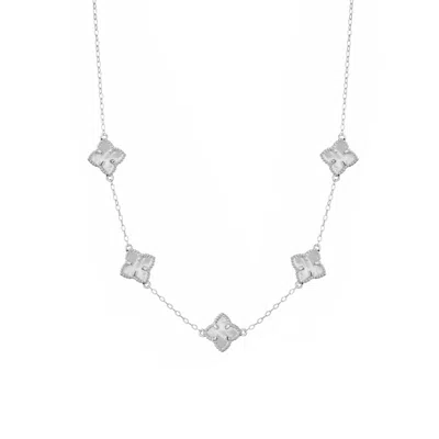 Silver Plated White Mother Of Pearl Floral Station Necklace