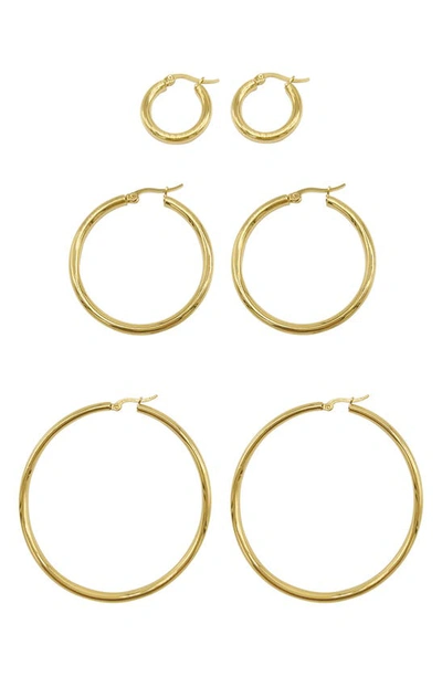 Set Of 3 Assorted Hoops And Stud Earrings In Gold