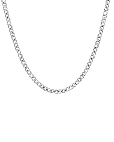 Rhodium Plated Cuban Chain Bracelet In Silver