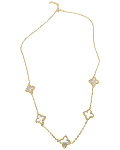 14k Gold Plated Mother-of-pearl Initial Clover Necklace In Multi