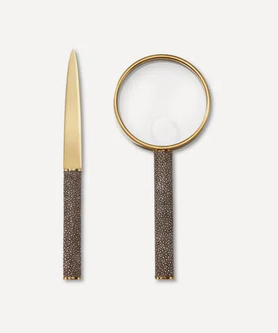 Shagreen Magnifying Glass And Letter Opener Set In Brown