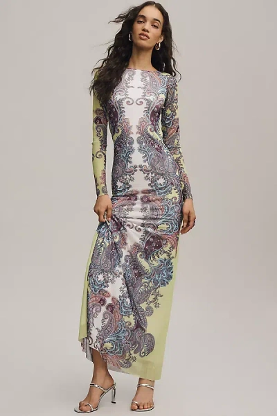 Didi Long Sleeve Mesh Maxi Dress In Hibiscus Shell