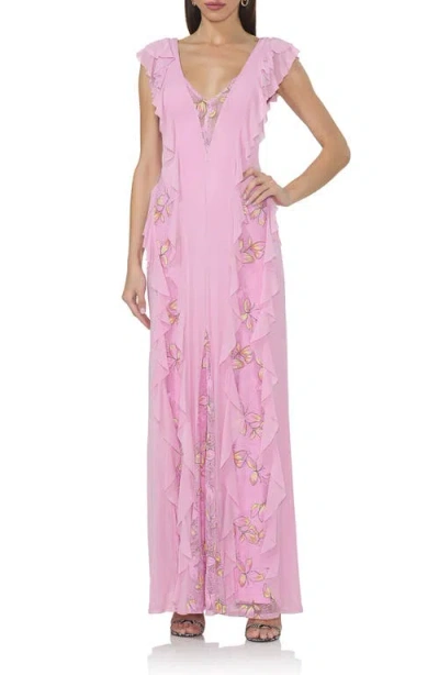 Didi Long Sleeve Mesh Maxi Dress In Hibiscus Shell