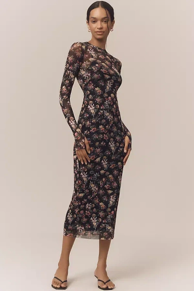 Joysel Long-sleeve Mock-neck Slim Midi Dress In Red
