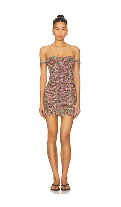 Aster Off The Shoulder Ruched Minidress In Lime Punch