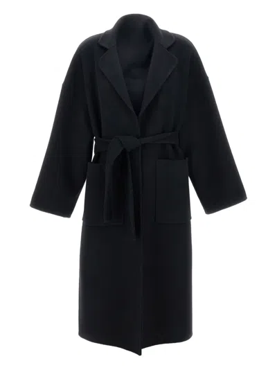 Long Wool Blend Coat With Relaxed Fit In Gray