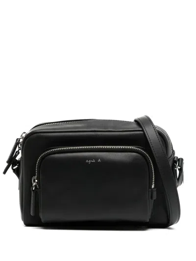 Engraved-logo Leather Crossbody Bag In 黑色