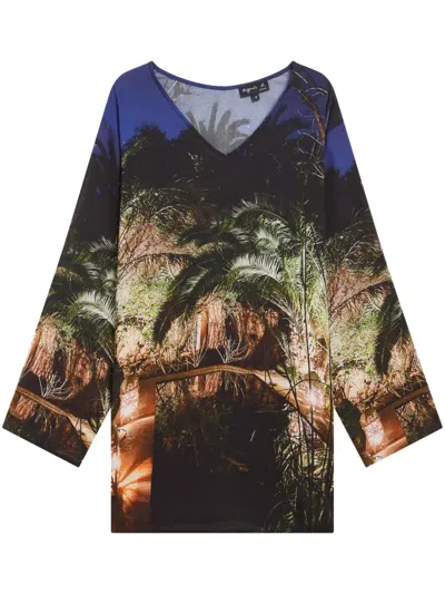 棕树印花长款上衣