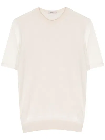 Wool-blend Crew Neck Top With Short Sleeves In Pink