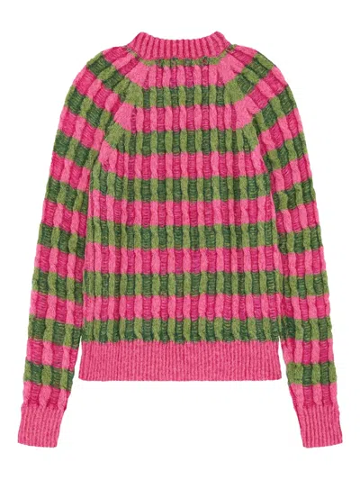 条纹渐变色钩编针织迷你连衣裙