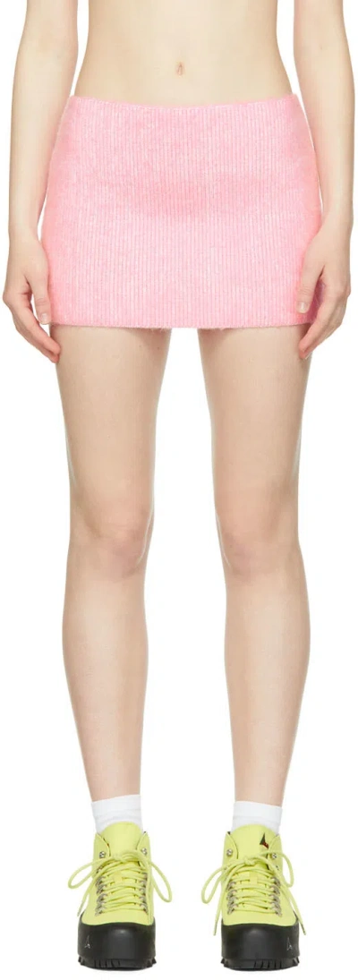 Pink Cotton Mini Skirt In White, Pink