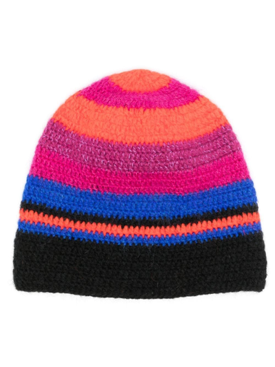 条纹钩编针织套头帽